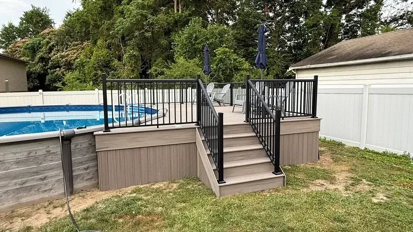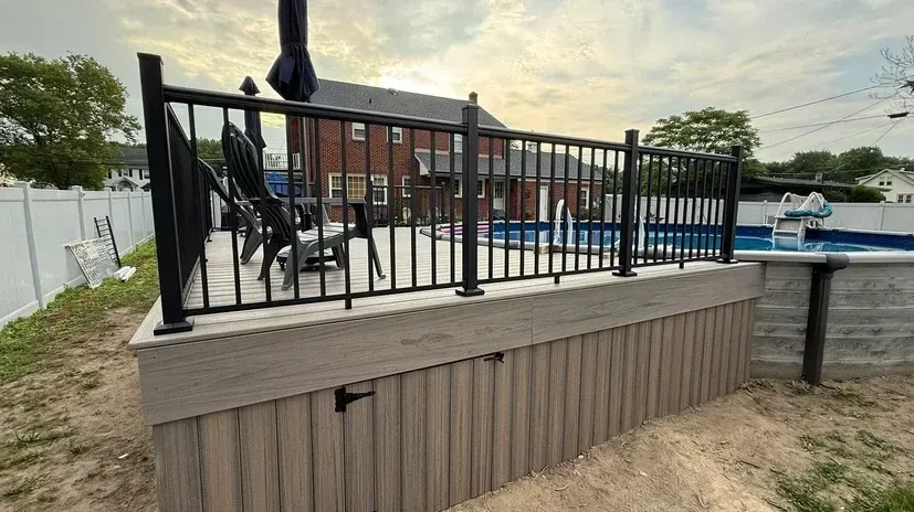 Their recent project—a custom Trex deck featuring classic brown boards with a chic white skirt—shows their commitment to quality. Trex decking is not only durable but also low-maintenance. Homeowners can enjoy their deck without the fuss of regular upkeep, as Trex boards resist fading and require only occasional cleaning.